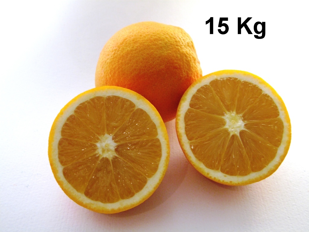 Caja de 15 Kg de naranja navel cultivada en el Huerto de San Eusebio en Carcaixent.